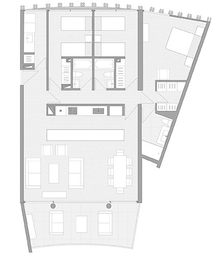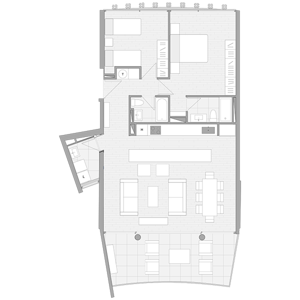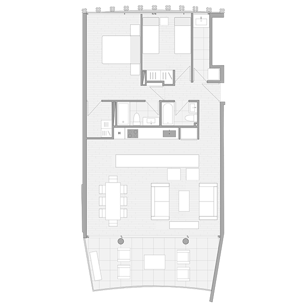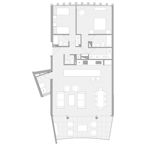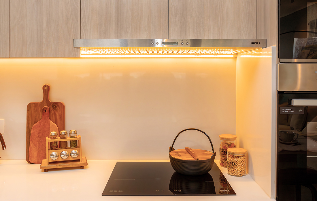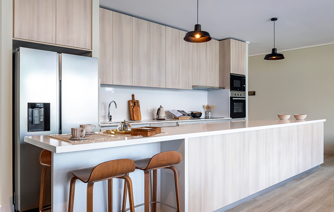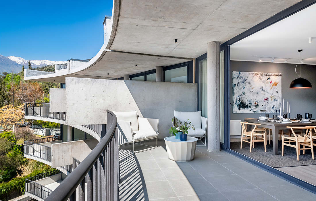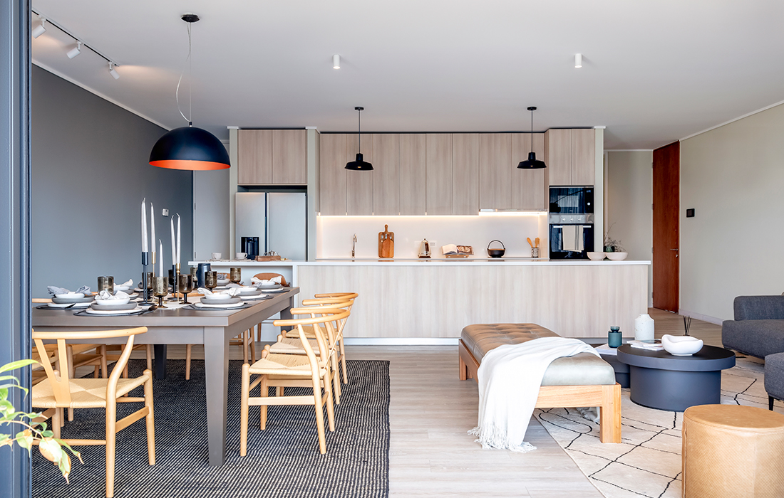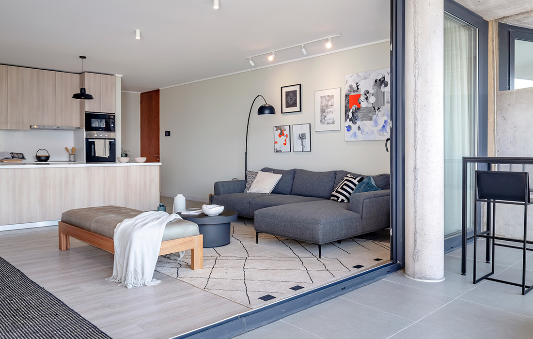 · Piso vinílico en living, dormitorios y cocinas | Porcelanato en baños, terrazas y loggias · Full Electric: cocina equipada con encimera vitrocerámica, horno eléctrico, campana, microondas y lavavajillas. Caldera individual para agua caliente y calefacción, por departamento para ahorro en consumo · Cubierta de cuarzo en cocina para una mayor resistencia · Todos los departamentos cuentan con espacio para lavadora · Ventanas termopanel de PVC · MILLACERO es una tecnología que gestiona de manera eficiente el ahorro de gastos comunes, entregando seguridad a los residentes, con el sistema que incorpora conserje remoto junto con la gestión de encomiendas.