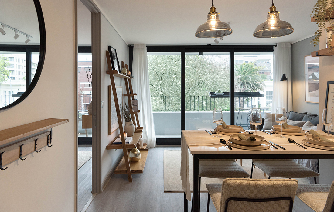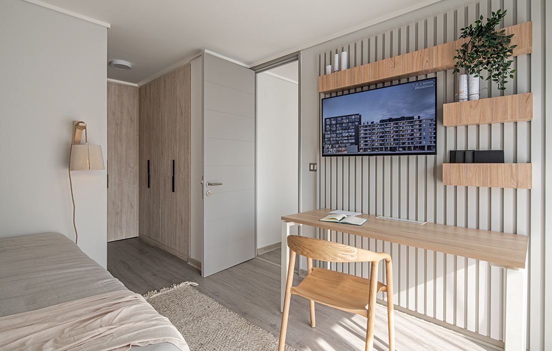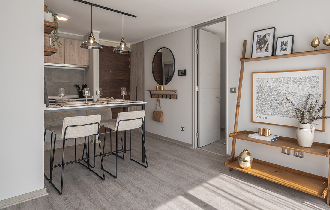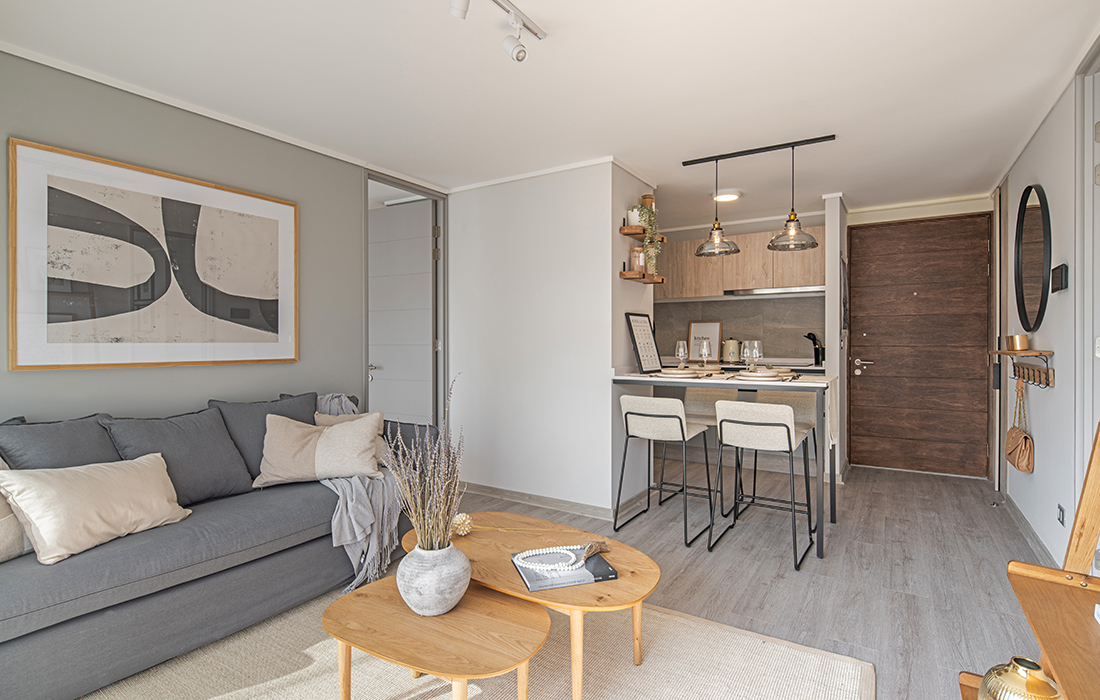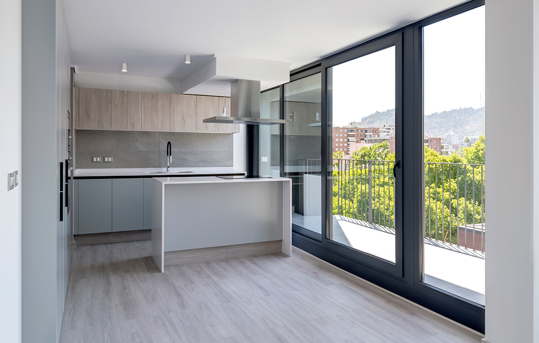 · Piso vinílico en living, dormitorios y cocinas | Porcelanato en baños y terrazas · Full Electric: cocina equipada con encimera vitrocerámica, horno eléctrico, campana, microondas, lavavajillas y termo eléctrico por departamento para ahorro en consumo · Cubierta de cuarzo en cocina para una mayor resistencia · Todos los departamentos cuentan con espacio para lavadora · Ventanas termopanel de PVC · MILLACERO es una tecnología que gestiona de manera eficiente el ahorro de gastos comunes, entregando seguridad a los residentes, con el sistema que incorpora conserje remoto junto con la gestión de encomiendas.