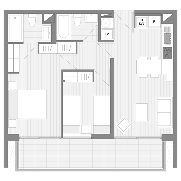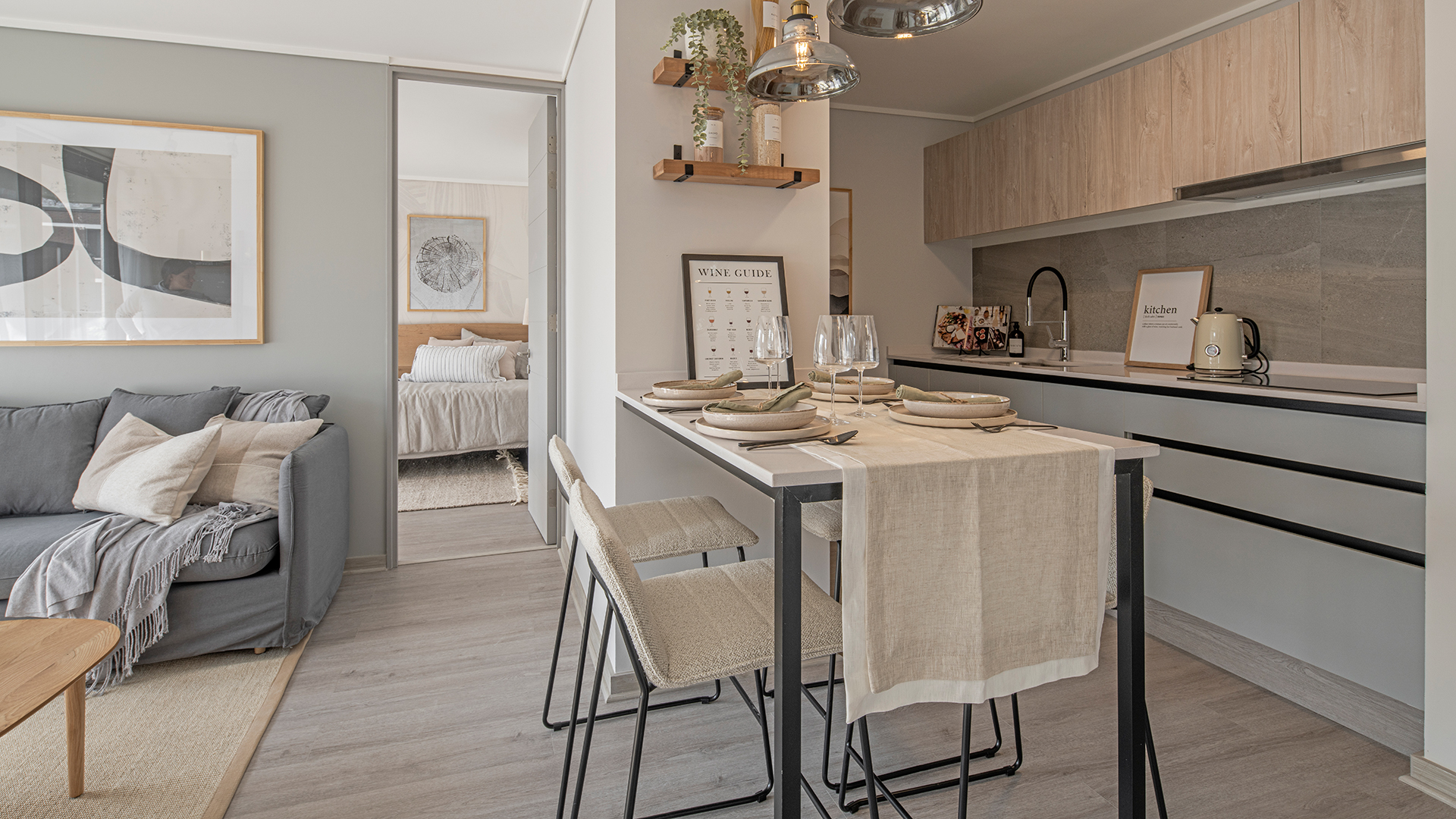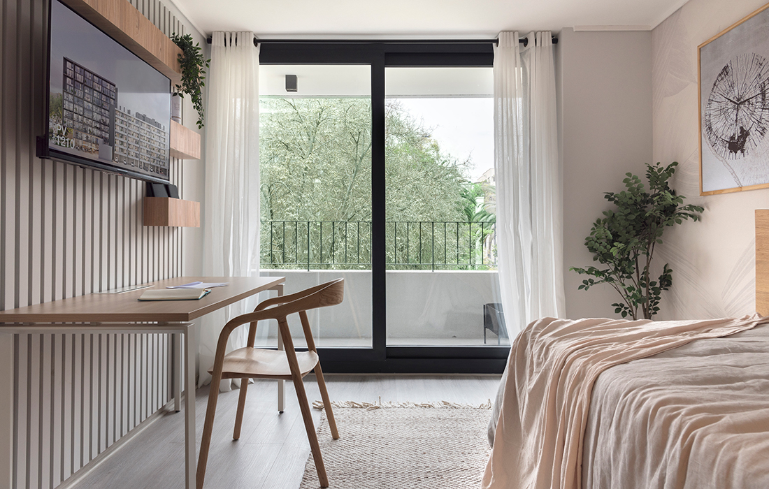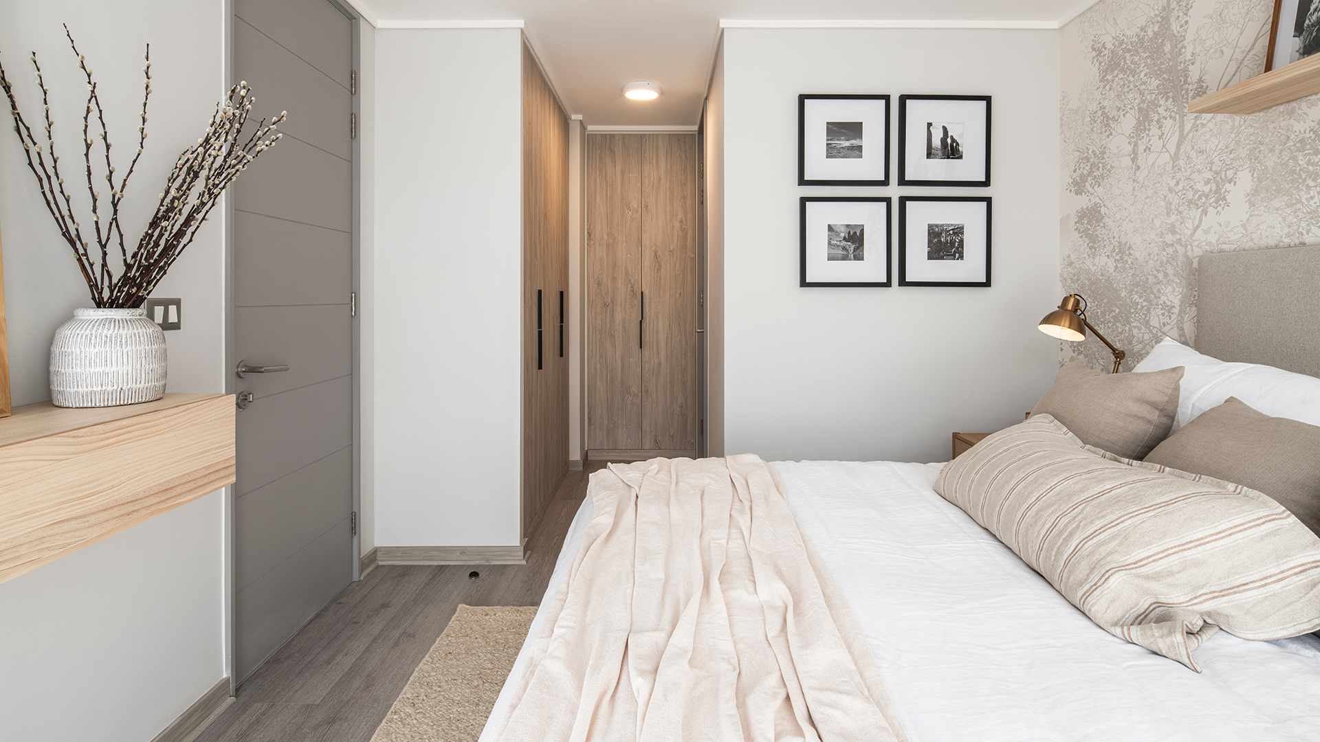 · Piso vinílico en living, dormitorios y cocinas | Porcelanato en baños y terrazas · Full Electric: cocina equipada con encimera vitrocerámica, horno eléctrico, campana, microondas, lavavajillas y termo eléctrico por departamento para ahorro en consumo · Cubierta de cuarzo en cocina para una mayor resistencia · Todos los departamentos cuentan con espacio para lavadora · Ventanas termopanel de PVC · MILLACERO es una tecnología que gestiona de manera eficiente el ahorro de gastos comunes, entregando seguridad a los residentes, con el sistema que incorpora conserje remoto junto con la gestión de encomiendas.