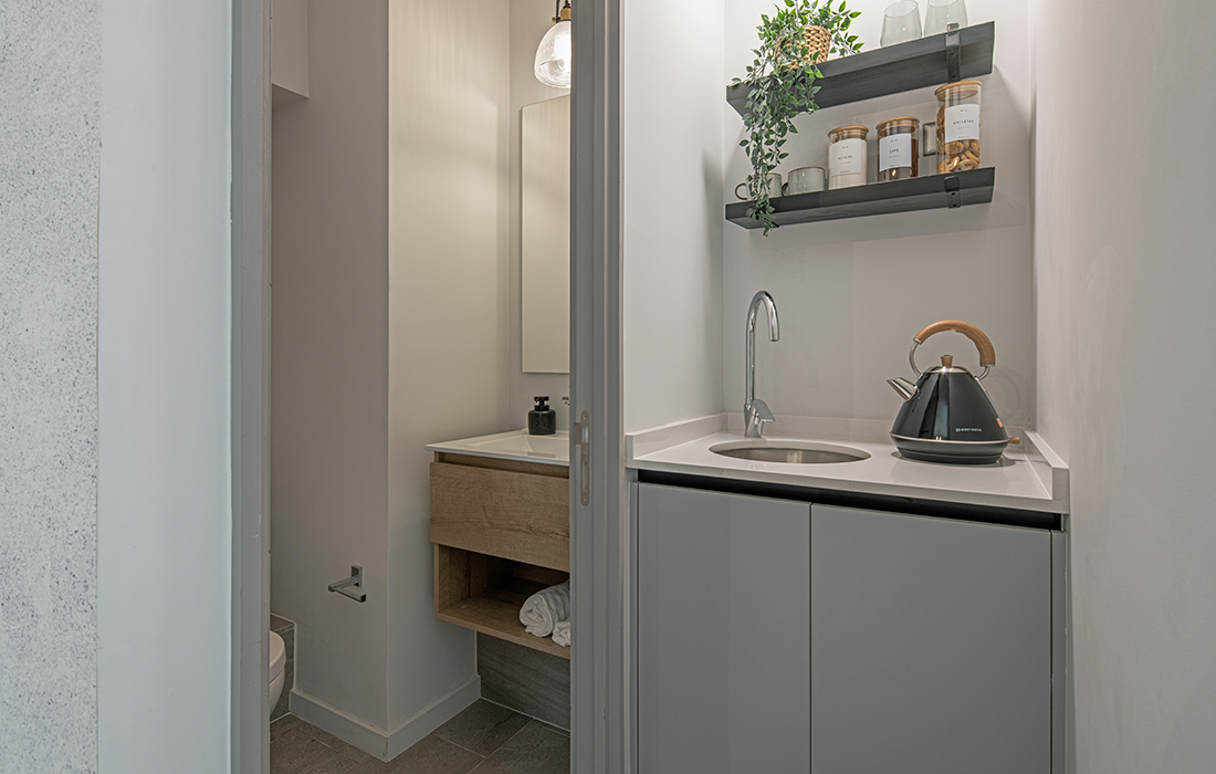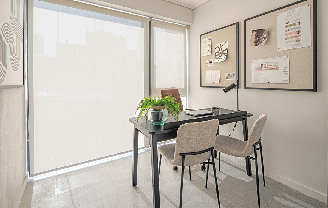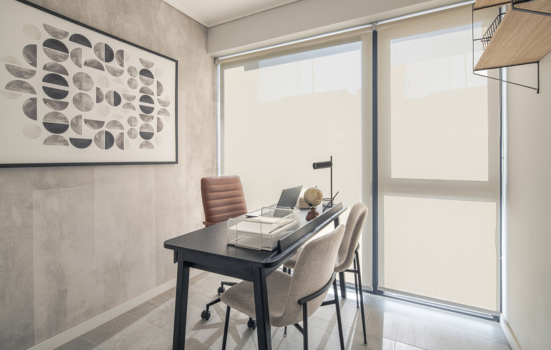 Las oficinas de PV1210, se distribuyen en ambientes privados, baños y kitchenette. En sus terminaciones se pueden encontrar: porcelanato en pisos, ventanas termopanel de PVC, entre otras destacables cualidades, que hacen de estas oficinas un lugar tranquilo y armónico para trabajar · MILLACERO es una tecnología que gestiona de manera eficiente el ahorro de gastos comunes, entregando seguridad a los residentes, con el sistema que incorpora conserje remoto junto con la gestión de encomiendas.